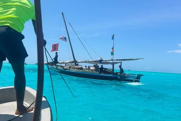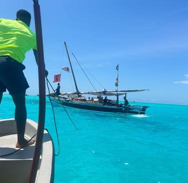 La prima escursione è stata a Mnemba, un’isola meravigliosa raggiungibile con una barca direttamente dalla spiaggia del resort. Durante il viaggio abbiamo avuto una sorpresa incredibile: abbiamo incontrato i delfini! Chi guidava la barca urlava: “Tuffatevi ADESSO!”, e ci siamo lanciati tra le onde ridendo e gridando. Nuotare con i delfini è stata senza dubbio l’esperienza più bella che si possa vivere a Zanzibar.